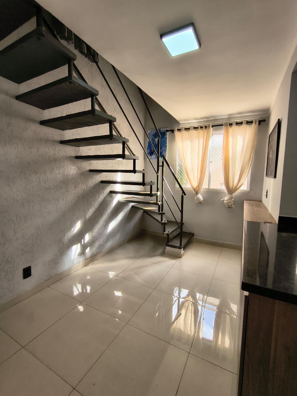 Apartamento cobertura duplex no Condomínio Regalle Club, com 104 m2, tendo 2 salas amplas, cozinha planejada e espaço gourmet coberto com churrasqueira.