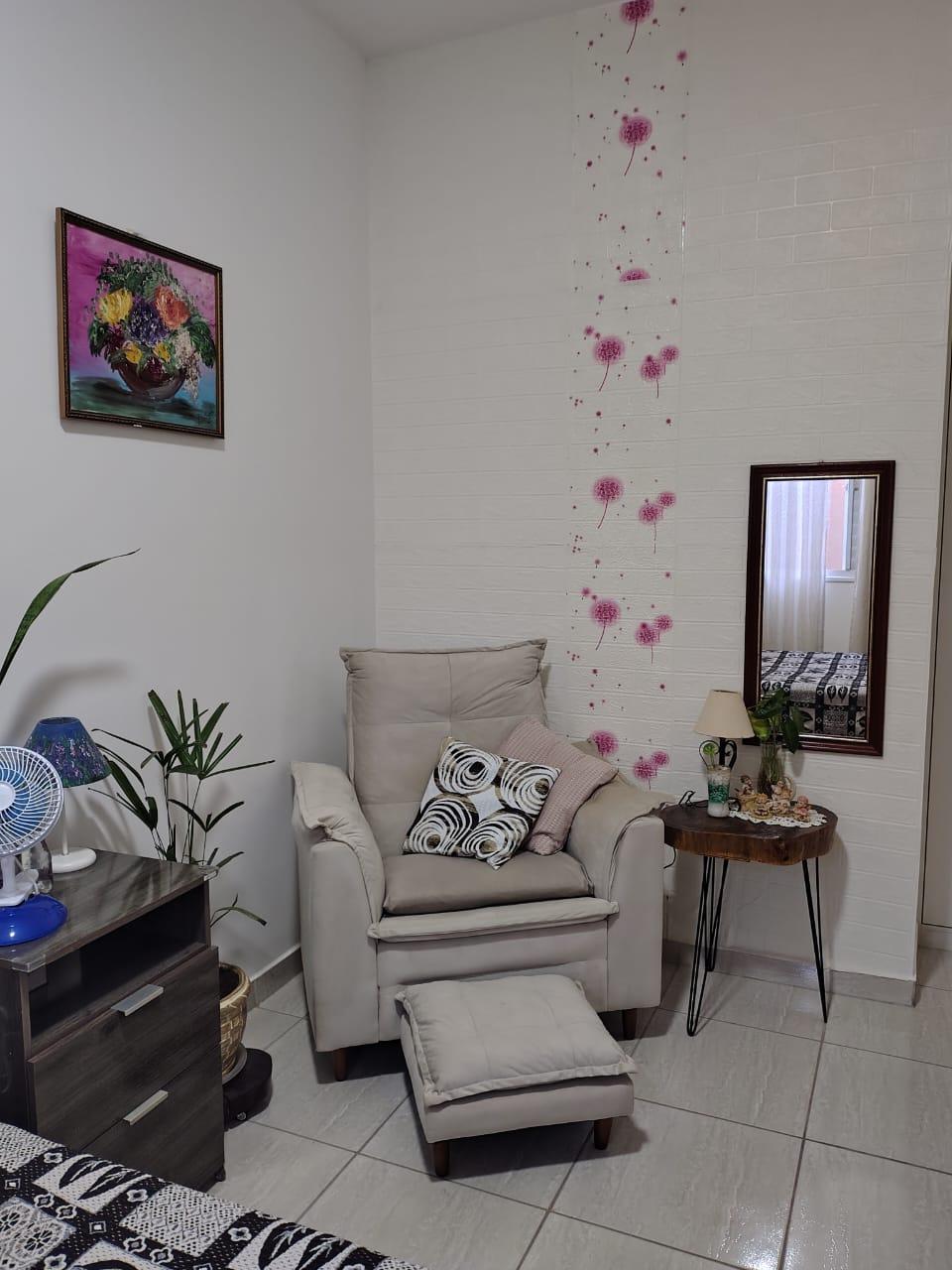 Possui 2 quartos, sala ampla, banheiro social com