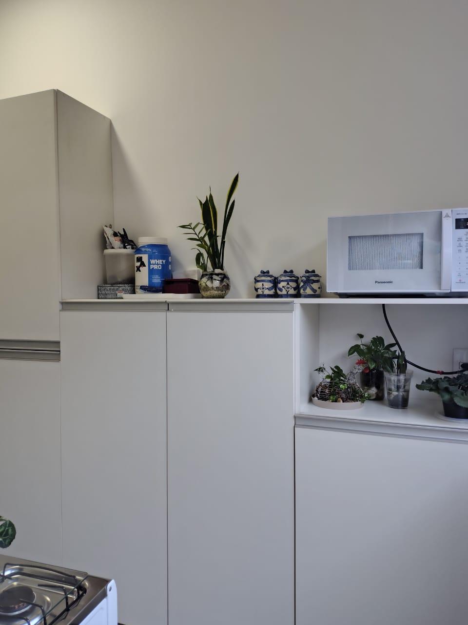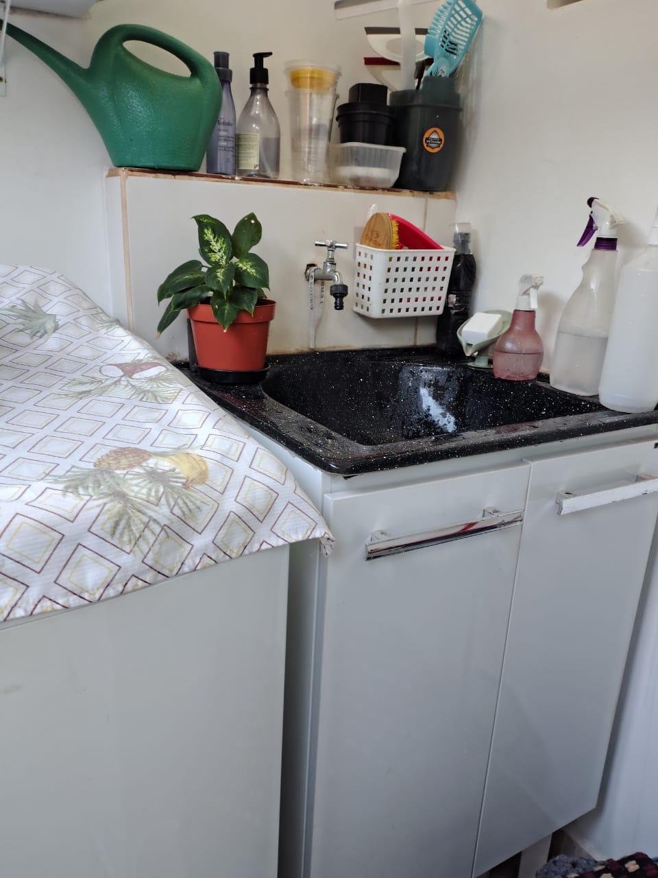 O imóvel conta com ar condicionado, área de serviço, armários na cozinha e no quarto.